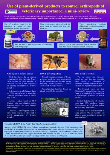 Current work PDPs the Poultry Red Mite,