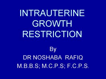 INTRAUTERINE GROWTH RESTRICTION PowerPoint PPT Presentation
