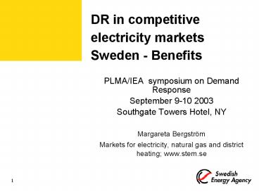 Title: DR in competitive electricity markets Sweden Benefits