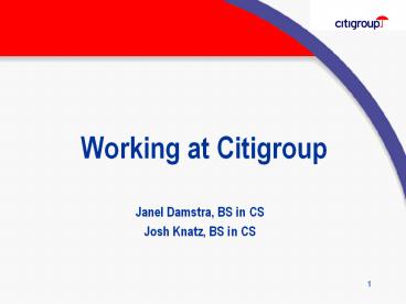 Working at Citigroup PowerPoint PPT Presentation