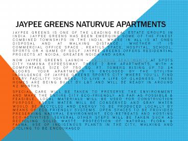 Agra. - Now Jaypee Greens Launch Neturvue Apartments at