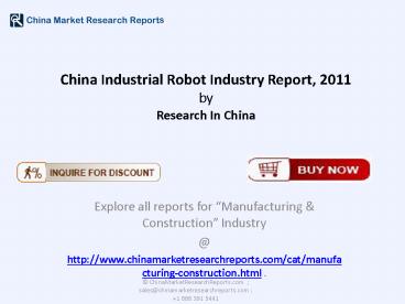 Undergoing the worst of financial crisis, the global robot industry again embraces a period of rapid growth. In 2010, the sales volume of industrial robots exceeded 115,000 units worldwide, almost twice of that in 2009, and the automotive, metal product and electric power industries are the major drivers for the demand. – PowerPoint PPT presentation