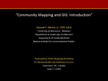 Community Mapping and GIS: Introduction PowerPoint PPT Presentation