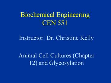 Title: Biochemical Engineering CEN 551