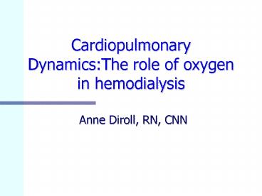 Title: Cardiopulmonary Dynamics:The role of oxygen in hemodialysis