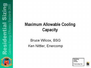 Maximum Allowable Cooling Capacity PowerPoint PPT Presentation
