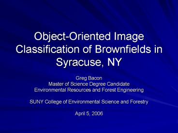 <Notice: Removed> ObjectOriented Image Classification of Brownfields in Syracuse, NY PowerPoint PPT Presentation