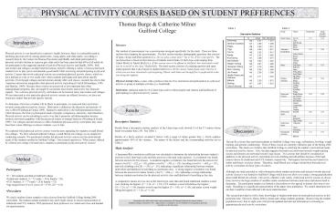 1PHYSICAL ACTIVITY COURSES BASED ON STUDENT