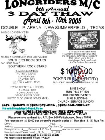 PRE-REGISTRATION FOR 2005 3DAY THAW