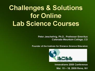 Colorado Mountain College, CO - Founder of the Institute for Distance Science