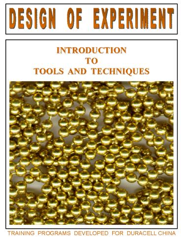 using response surface methodology. (session 2) - Promotes systematic and logical testing that