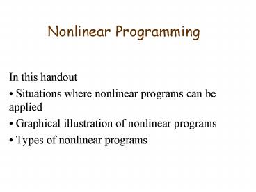 nonlinear. - There are different types of nonlinear programs,