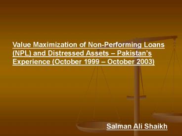 and Distressed Assets Pakistans Experience
