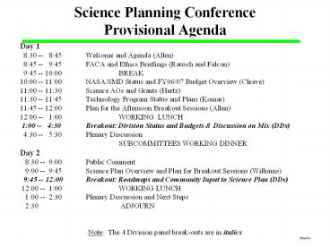 Science Planning Conference Provisional Agenda PowerPoint PPT Presentation