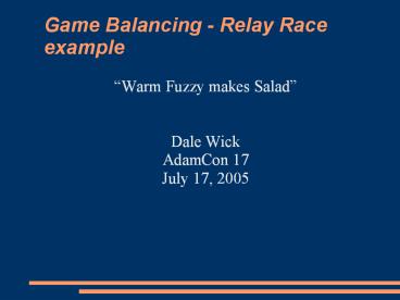 Game Balancing - Relay Race example PowerPoint PPT Presentation