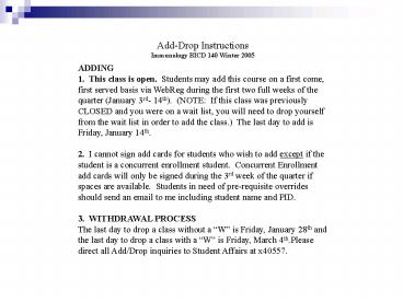 1Add-Drop Instructions Immunology BICD 140 Winter