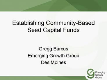 <Notice: Removed> Establishing CommunityBased Seed Capital Funds PowerPoint PPT Presentation
