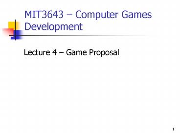 MIT3643 Computer Games Development PowerPoint PPT Presentation