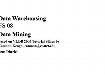 1Data WarehousingFS 08 Data Mining based on VLDB