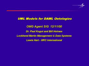 UML and DAML complicate the mapping. - We recommend that OMG initiate standards efforts