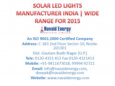 Title: Solar LED Lights manufacturer India CALL @ 9811673018