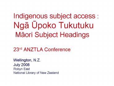 Maori Subject Headings 23rd ANZTLA