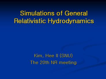 Title: Simulations of General Relativistic Hydrodynamics