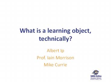 Title: What is a learning object, technically?
