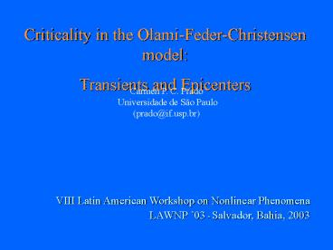 Carvalho and C.P.C. Prado, PRL 87 (2001)