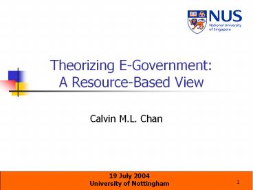 <Notice: Removed> Theorizing EGovernment: A ResourceBased View PowerPoint PPT Presentation
