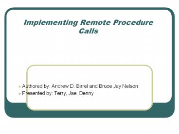 Implementing Remote Procedure Calls PowerPoint PPT Presentation