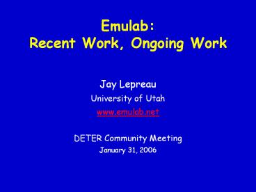 <Notice: Removed> Emulab: Recent Work, Ongoing Work PowerPoint PPT Presentation