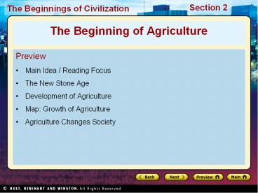 Main Idea The development of agriculture was a m