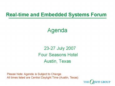 2RTES Forum High Level Agenda Austin, Texas -