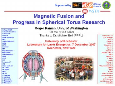 Title: Magnetic Fusion and Progress in Spherical Torus Research