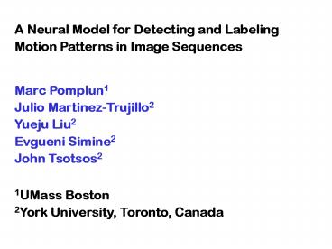 Patterns in Image Sequences Marc Pomplun1 Julio