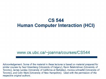 Title: CS 544 Human Computer Interaction (HCI)