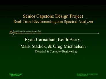 Senior Capstone Design Project RealTime Electrocardiogram Spectral Analyzer PowerPoint PPT Presentation