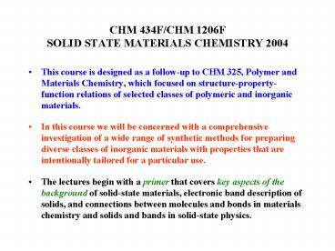 Title: CHM 434FCHM 1206F SOLID STATE MATERIALS CHEMISTRY 2004