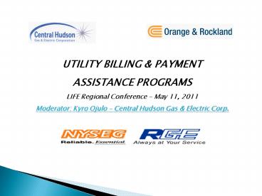 UTILITY BILLING & PAYMENT ASSISTANCE PROGRAMS LIFE Regional Conference May 11, 2011 Moderator: Kyro Ojulo Central Hudson Gas & Electric Corp. – PowerPoint PPT presentation
