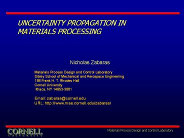 1UNCERTAINTY PROPAGATION IN MATERIALS PROCESSING