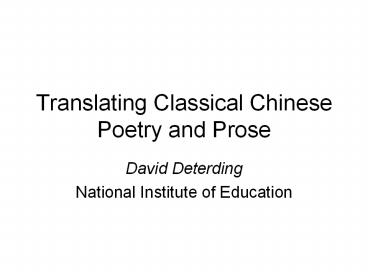 <Notice: Removed> Translating Classical Chinese Poetry and Prose PowerPoint PPT Presentation