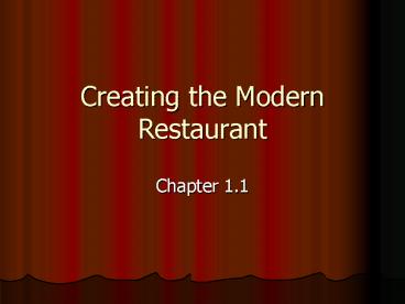 Creating the Modern Restaurant PowerPoint PPT Presentation