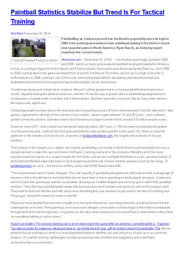 1Paintball Statistics Stabilize But Trend Is For