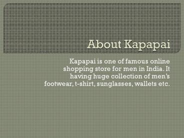 Kapapai is one of famous online shopping store for men in India. It having huge collection of mens footwear, t-shirt, sunglasses, wallets etc.