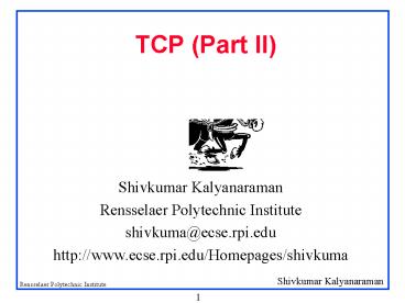Title: TCP Part II