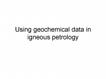 modelling (quite arduous) Geochemistry - M. Wilson Igneous petrology, a global tectonic