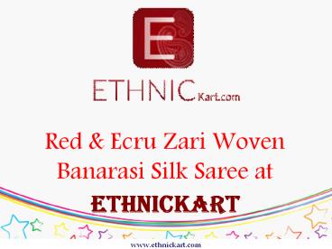 Title: Red & Ecru Zari Woven Banarasi Silk Saree at Ethnickart