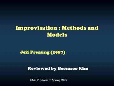 better search techniques needed. - Limitations of AI applying to Improvisation