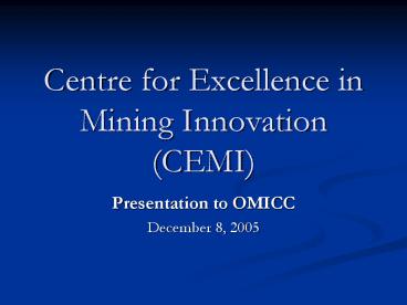 Title: Centre for Excellence in Mining Innovation (CEMI)